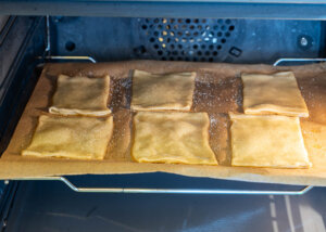 - Sella los bordes presionando ligeramente con los dedos para que el interior se infle en el horno.