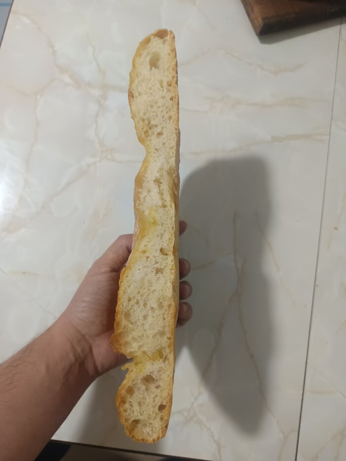 Se trata de un pan más bien plano, aunque en una misma torta se alternan diferentes grosores. Tiene un sabor a aceite característico, además de una corteza suave, fina y dorada, y una miga sabrosa y ligeramente alveolada. Por lo tanto, es ideal para desayunos y meriendas.